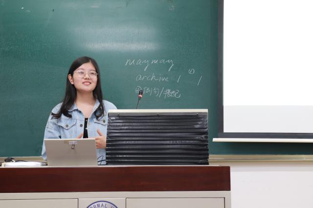 首先,陆芳卉同学向大家介绍了日语学习的经验。她简要地讲明了学习日语的原因,她认为,促使我们学习这门语言的主要动力不只是兴趣,更是压力和需求。日语在中国古代史的学习中具有重要的作用。陆芳卉同学向大家讲解了一些日语的基础知识,并以日本颁布新年号“令和”的新闻为切入点,来说明日语保留了很多中文的特点。她强调,日语与中文相近,所以比较易于学习,但也使人容易将中文带入其中,产生混淆。最后,她向大家介绍了一些学习日语的途径,包括在NHK平台观看日语音频、阅读原版日文名著和漫画等。