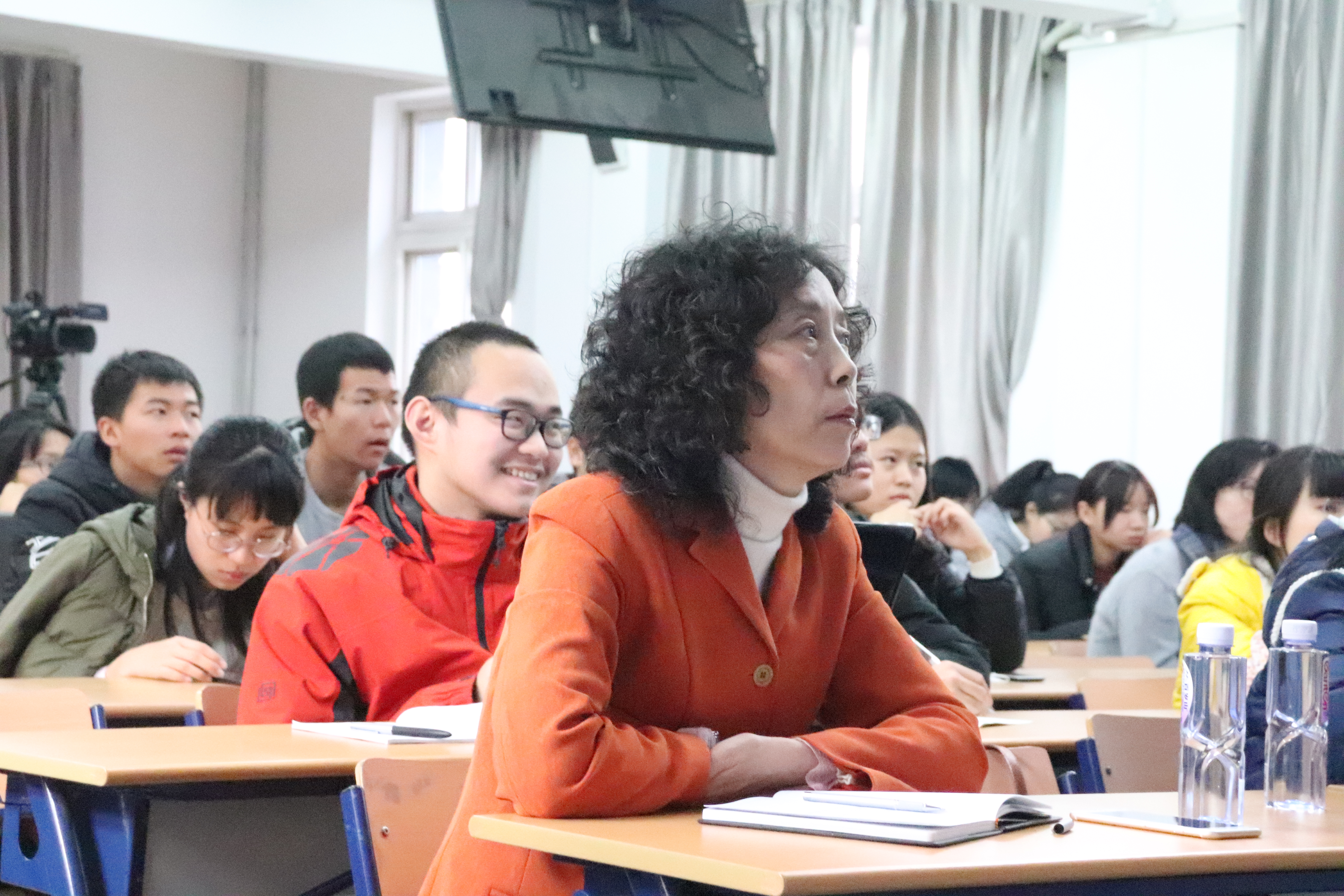 接下来,老师为同学们详细的介绍各朝代青花的画法及绘画的习惯,如餐具没有人物纹,但酒具中有人物纹等等,各朝代的画法也有创新与特色之处,如元代的箍线、搨料填色法。在弄清楚各朝代的绘画特点之后,老师教大家进行了简单的辨伪,以电视剧中青花瓷的误用为切入口,向同学们进一步分析了假青花的识别。最后,陈殿老师为大家详细介绍了混水法,即在作画过程中笔尖不接触作品的表面,仅用笔带着水流来做画,用此方法画出的青花呈现出一种层次感,别有一番韵味。要画出好的青花需要长时间练习和对水流的精准把握,老师提到他在跟随母亲学习过程中的艰辛与努力,鼓励同学们勤学善思,多与老师交流。在提问环节,老师耐心地解答了大家关于青花的疑惑,最后大家合影留念,讲座圆满结束。