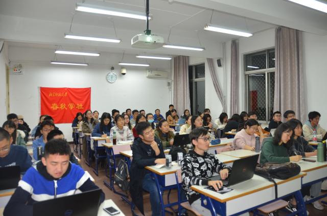 2019年10月27日晚六点,春秋学社在教二212教室举行论文写作分享会,本次活动有幸邀请到2016级本科生高超同学来作讲解,春秋学社副社长杨晓锐同学主持此次分享会。