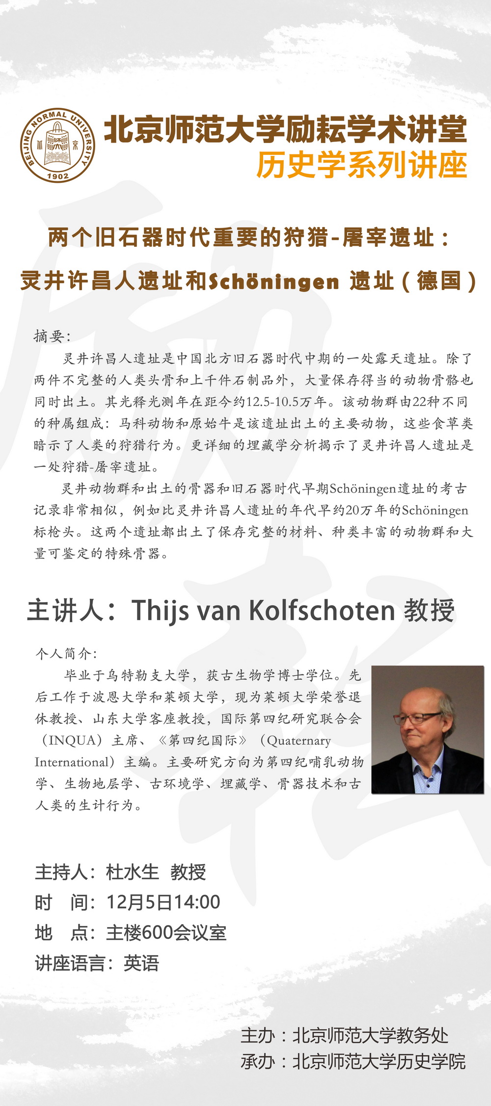 【励耘讲堂】Thijs van Kolfschoten:两个旧石器时代重要的狩猎-屠宰遗址:灵井许昌人遗址和Schöningen 遗址(德国)