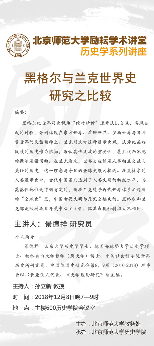 【励耘讲堂】景德祥:黑格尔与兰克世界史研究之比较