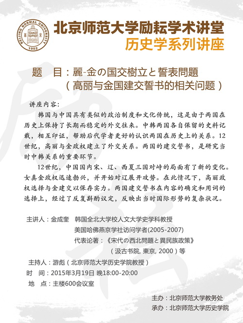 【励耘讲堂】金成奎:麗-金の国交樹立と誓表問題(高丽与金国建交誓书的相关问题)
