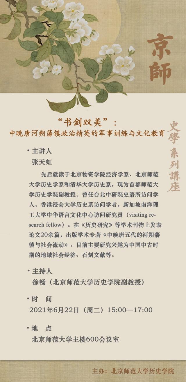 【京师史学讲座】张天虹:“书剑双美”:中晚唐河朔藩镇政治精英的军事训练与文化教育