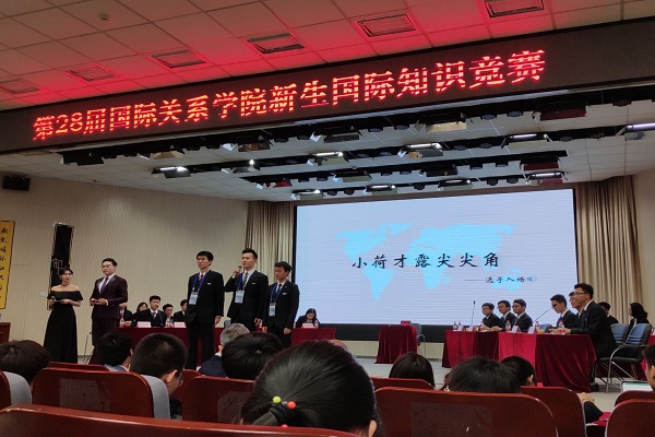 本届首都高校新生国际知识竞赛以“丝绸之路,青年力量”为主题,旨在培养青年学生的国际视野与家国情怀,采取校内初赛、校外决赛的形式,除国际关系学院本校院系代表队参赛外,还邀请了对外经贸大学、外交学院、中国政法大学、北京师范大学等多支高校代表队,优秀学子汇聚一堂,同台竞技。国际关系学院校长陶坚,校长助理、国际政治系主任达巍,中国驻法国使馆公使衔参赞王绍旗、中国驻菲律宾宿务原总领事、中国公共外交协会创会秘书长宋荣华等嘉宾莅临现场。
