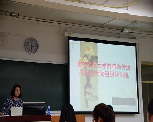 最后李老师讲述了北京师范大学党组织的创建情况:北京师范大学党支部是中国共产党最早的党支部之一,在中国共产党刚刚建立的1921年就组建了。北京师范大学早期的马克思主义者早在中国共产党成立前就积极参与了中国共产党的创建工作,做了英勇的探索,为中国共产党的建立立下了不朽功勋。