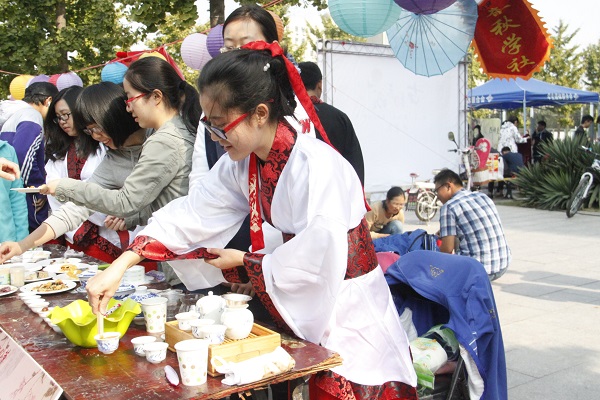本次活动更有春秋学社副社长白月的茶艺展示,娴熟的动作和精彩的表演吸引了大批参与者,学社成员为大家奉上了八宝茶,茉莉花茶,红茶等多种特色茶。不但让本次活动浸润在茶香中,也为本次活动增添了丰富的茶文化内涵。