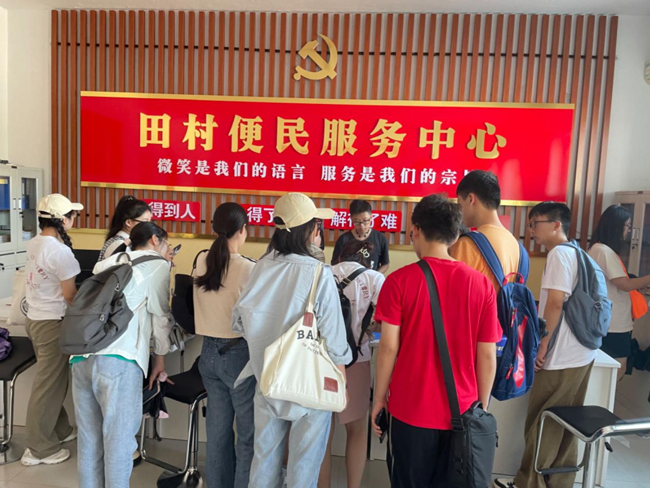 在田村,村委班子成员通过落实“三会一课”制度、严格党员教育管理、推行全要素网格化管理党建水平得到快速提升。实践队参观了田村便民服务中心,见到了数字化乡村建设的广阔前景。
