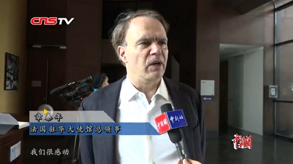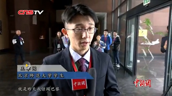 小组副组长兼外联专员王聿闻在使馆大厅接受了中新社、美联社等媒体的采访,表达了对于遇难巴黎民众以及善良的普通穆斯林民众的同情,并衷心地期盼世界和平。