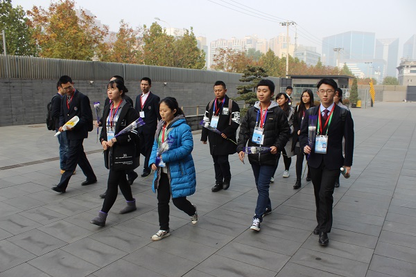 十一月的北京,已经有了些许的凉意,同学们的心情也笼罩上一层阴霾。同学们献上白色菊花并鞠躬致哀。活动现场井然有序,气氛庄重肃穆。