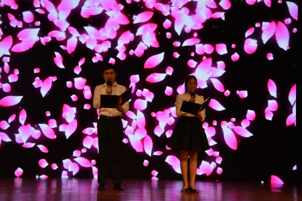晚7时,晚会正式开始,首先是历史学院拉拉队表演的啦啦操。他们手持金色扎花,动作规整,柔韧灵活,舞热了现场气氛。之后杨共乐院长上台致辞,他希望毕业生们敬业谨严、同心奋进,在各自的岗位上做出成绩,为北师大历史学院争光添彩。