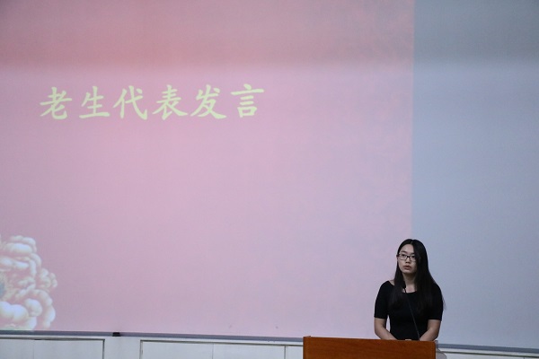 2013级本科生张俊毅和2015级硕士生张裴桐作为老生代表发言。张俊毅同学结合自己的学习经历,与新生分享了对于“师范”、“历史学”的认识与看法。张裴桐同学则从学习、社交和生活等三个方面入手,为新同学尽快熟悉、融入大学生活提供了经验和建议。