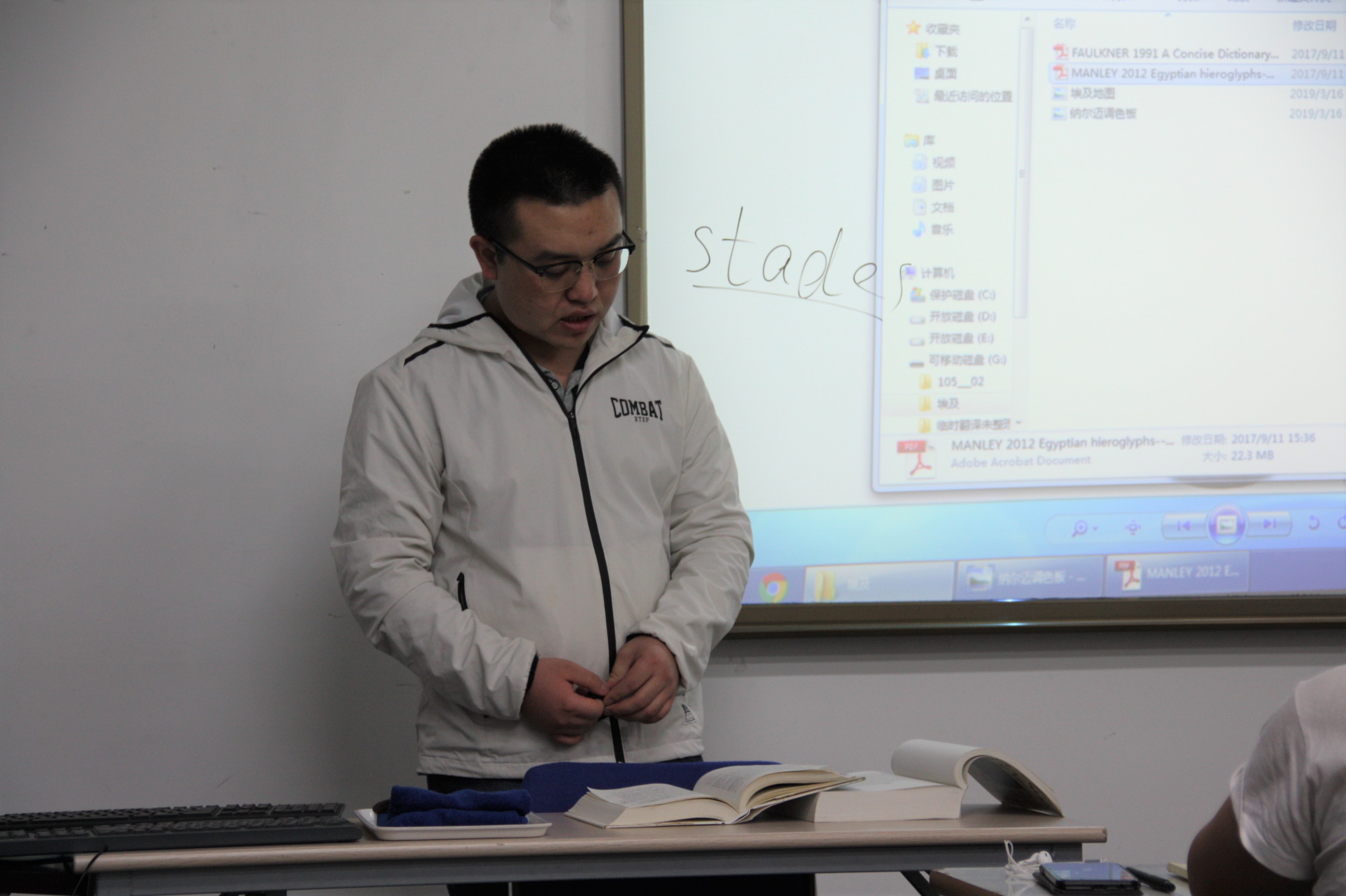 3月16日的读书会中,张弩结合希罗多德《历史》第二卷,介绍了埃及的相关情况,同时简单介绍了古埃及文字的释读方法。他还向同学们推荐了埃及学研究的相关书籍,耐心解答了同学们在阅读中的疑问。