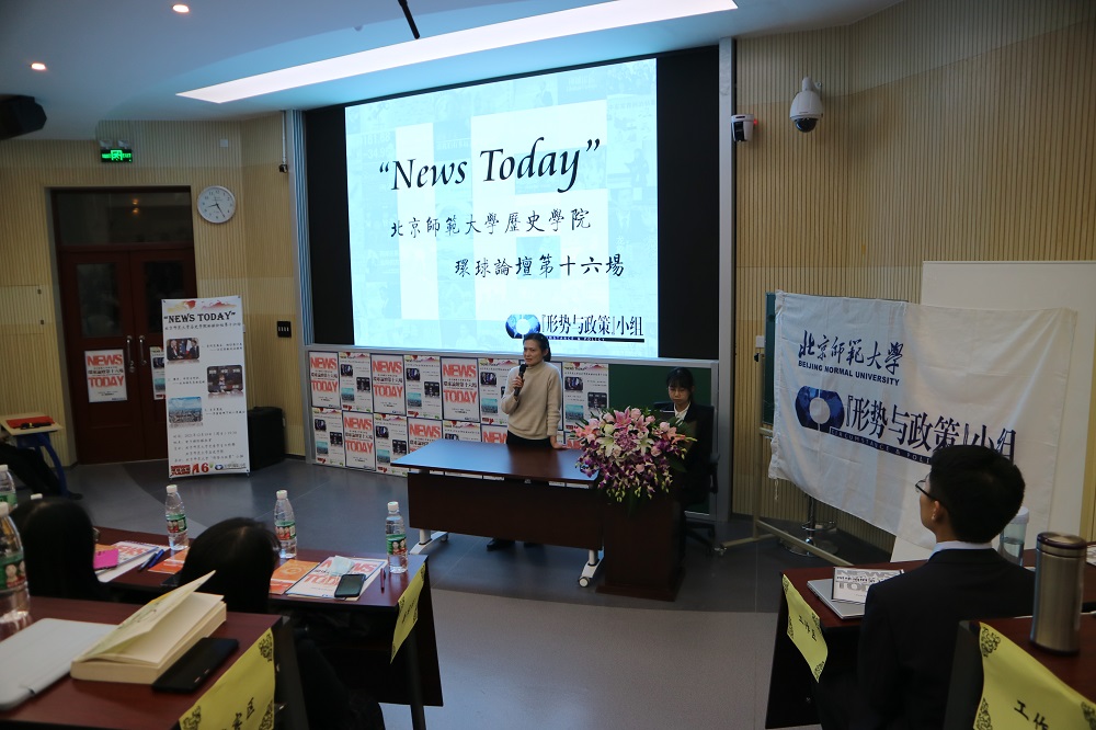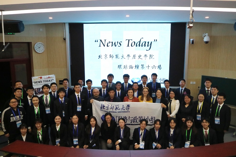 “News Today”新爱体育(官网)官方网站环球论坛是历史学院依托“形势与政策”小组推出的一项特色精品活动,自2006年以来已连续举办十六场。活动中,学生自主选择感兴趣的国内国际时事话题进行分组主题展示,并邀请历史学院的教授学者进行专业点评。在论坛上表现出色的同学将有机会以“学生进课堂”的形式为全校本科生授课。环球论坛拓宽了同学们的视野,培养了团队协作能力,也对外展示了北师大学生博古通今、胸怀天下的国际视野,在北师大乃至北京市高校范围内产生了广泛的影响。