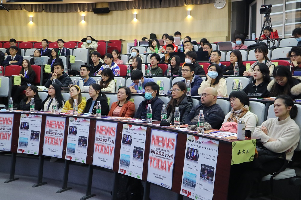 12月19日晚,“News Today”新爱体育(官网)官方网站环球论坛第十六场在我院隆重举行。活动由北京师范大学党委学生工作部、历史学院主办,我院“形势与政策”小组承办。北京师范大学党委学生工作部部长隋璐璐老师,校党委学生工作部辅导员发展中心牛小游老师,历史学院院长张皓教授,世界现代史教研室主任安然教授,考古与博物馆学教研室副教授单月英老师,世界近代史教研室副教授贾珺老师,中国近代史教研室副教授湛晓白老师,历史学院党委副书记赵云慧老师,团委书记胡小溪老师,历史学院2021级本科班班主任吴愁老师,2020级本科班班主任张辞修老师、徐晓枫老师应邀出席活动。第二十二届北京师范大学“十佳大学生”获得者代表、新爱体育(官网)官方网站各社团代表等应邀参加。