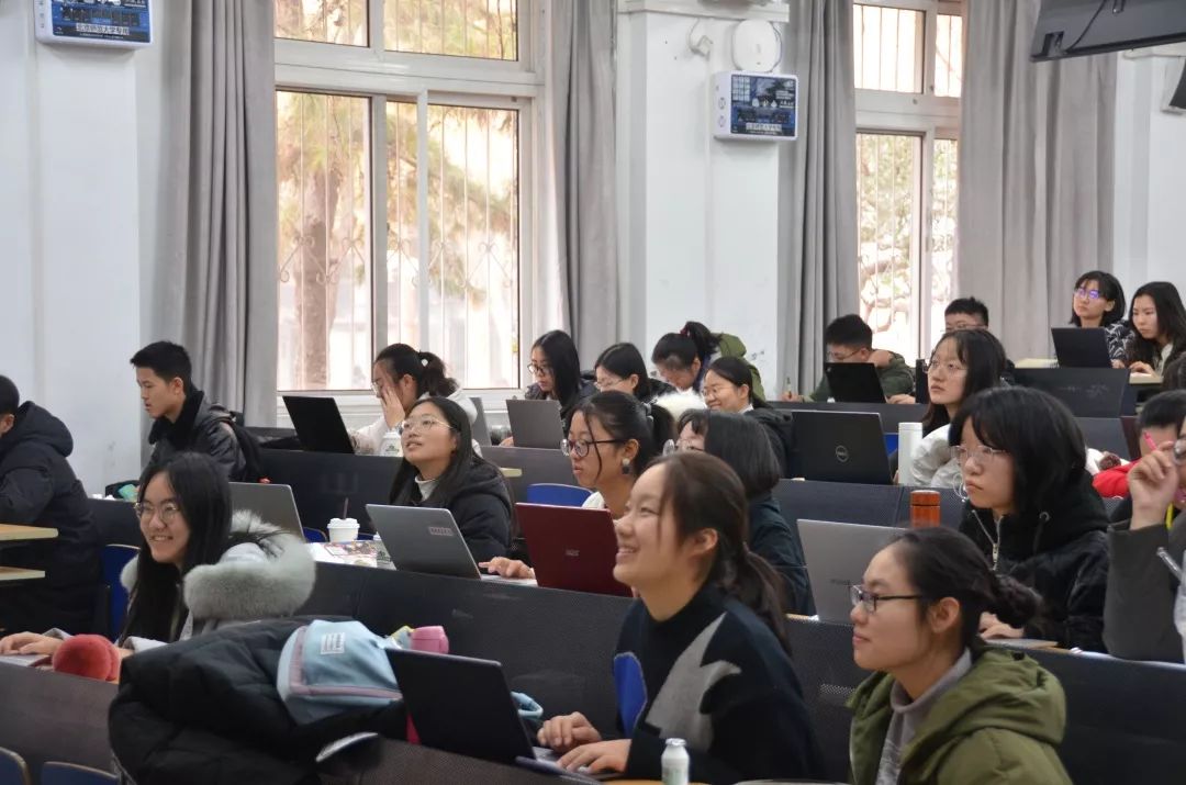 此外,老师也结合了生活经验和自己的经历,讲授自己孩子、教育教学、校外交流的有趣故事,同时,借引《诗经小雅》、《论语》、《中庸》等图书典籍,更好的剖析了文本的含义,生动的诠释了讲授内容,讲解过程十分顺畅,师生频频互动,现场气氛十分活跃,同学们都沉浸于其中。