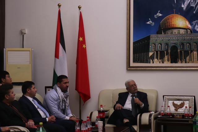 2018年11月10日下午,应巴勒斯坦国驻华大使法里兹·马赫达维(Fariz Mahdawi)邀请,我院“形势与政策”小组成员代表赴巴勒斯坦国驻华使馆纪念已故巴勒斯坦民族权力机构主席亚西尔•阿拉法特逝世十四周年。