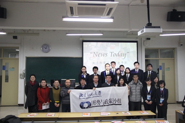 2014年12月20日晚八点,“News Today”新爱体育(官网)官方网站环球论坛第九场在教二108 隆重举行。新爱体育(官网)官方网站院长杨共乐老师,北京师范大学本科生工作处处长王洛忠老师,历史学院世界现代史教研室教授孙立新老师,历史学院世界近代史教研室副教授贾珺老师,历史学院分党委副书记王卓凯老师,历史学院学生专职辅导员李力老师,历史学院学生事务助理、2014级本科生班主任周一帆老师等嘉宾莅临现场。