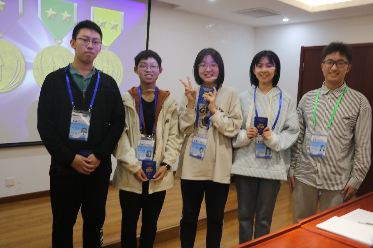 第十六届组长李远哲、秘书长郭婧、副组长兼学研专员张正宇、副组长兼宣传专员焦奥凌、分别为新生颁发胸牌和护照。“邢予正护照”已陪伴小组进入第六个年头,护照采用汉、英、法三种语言,内页包含北师大校徽、小组标徽等设计元素、签证页的底纹为北师大各处标志性建筑。小组护照是每一位成员身份的象征,也是成员们成长蜕变的见证。