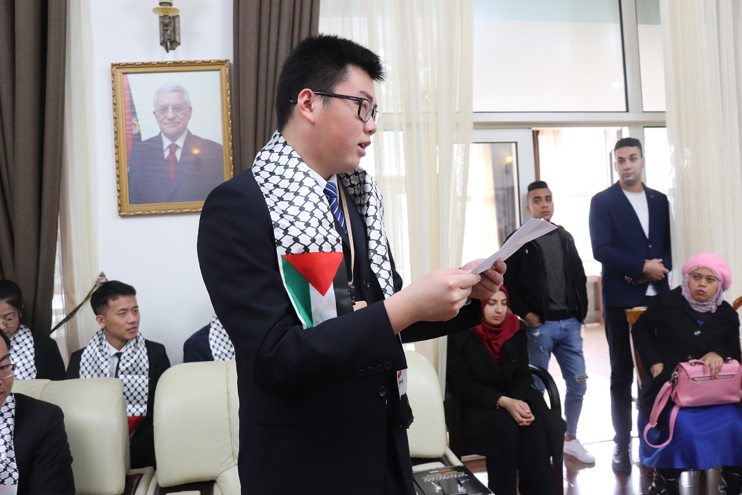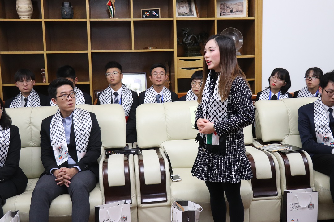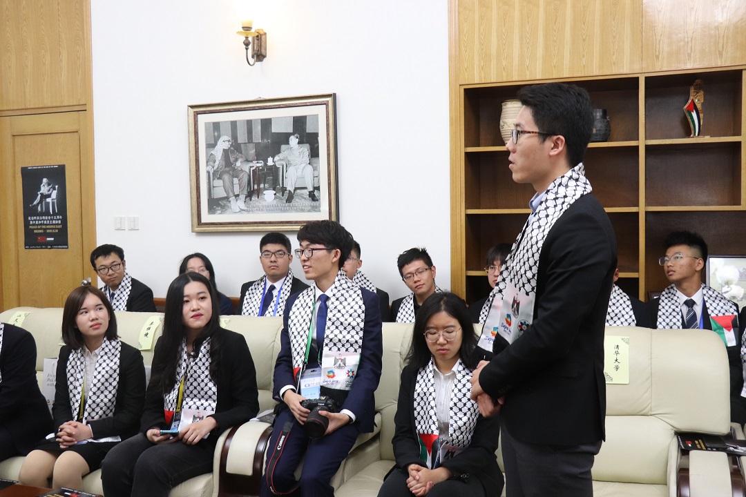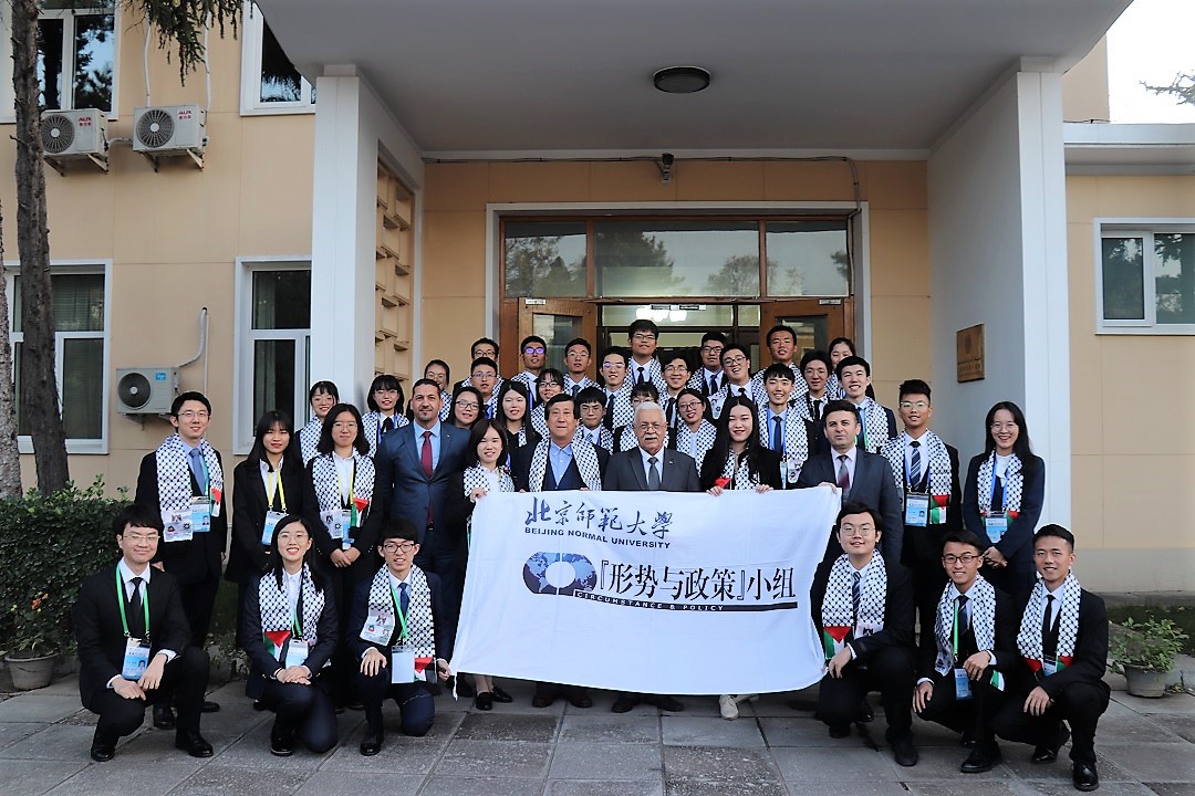 2019年11月10日,新爱体育(官网)官方网站“形势与政策”小组与国际关系学院国际问题研讨会、清华大学研究生会、北京大学台湾研究会、对外经济贸易大学国际关系协会、北京理工大学海峡文化交流协会、北京外国语大学国际关系学学院学生会、中国政法大学国际时政论坛的同学一同到达巴勒斯坦驻华使馆,共同缅怀阿拉法特主席,开展中东和平展望主题论坛,并就当前中东地区局势及其未来走向与和平前景进行展望。在论坛环节,各高校同学积极发言,与大使交流对中东问题的看法。国际关系学院孙致远同学代表首都高校时事类社团发言并表达了对阿拉法特主席的悼念与对中东地区和平的期盼,来自北京大学台湾研究会的李颖恒同学与来自清华大学研究生会的王宸昊同学对大使就中东地区的局势与新时代的中巴关系进行提问,大使一一为他们解答。通过本次活动,大家相互交流日后的时事活动交流安排,并相互邀约之后的活动合作,加深了彼此的友谊。活动也促进了首都各高校间的学术交流互通,加深了各兄弟社团间的感情联络。