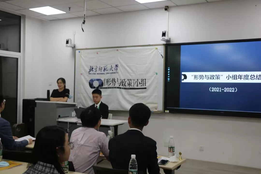 总结会开始后,第十五届“形势与政策”小组组长许宸睿作《新爱体育(官网)官方网站“形势与政策”小组2021-2022年度工作报告》,全面总结了“形势与政策”小组本学年工作。《报告》指出:本学年,“形势与政策”小组在学校和学院的悉心指导和大力支持下,继续完善组织建设、充实常规活动,全面配合学校《形势与政策》课程建设工作,大力推进体制机制创新和可持续发展,丰富拓展校外实践,深入展开校际交流,积极参与港澳台和国际友好交往,强化团队文化建设和品牌认同,探索“第二课堂”延展和“第二集体”建设同向同行,获得了校内外媒体的关注。小组成功举办历史学院“古今世界 天下大观”主要发达国家国情系列讲座高毅教授专场及“News Today”环球论坛第十六场;代表北师大获得2022年内地高校港澳台学生中华文化知识大赛亚军;筹办“博古通今 胸怀天下”第十二届时事知识竞赛;充分利用“邢予正”微信公众号平台,制作发布一系列小组徽标和特色文创产品,大力推进新媒体建设。