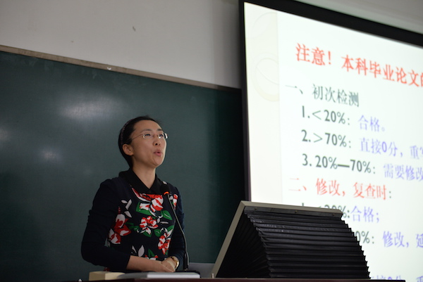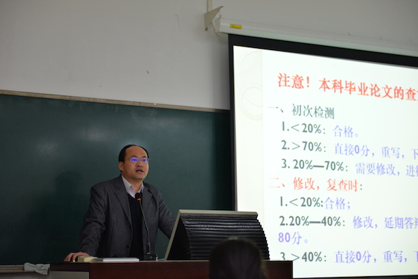 姜海军老师首先就本科生毕业论文查重检测与学术规范问题做了说明。他要求同学们重视学术规范,杜绝学术不端行为,并强调学术诚信品质和学术能力同等重要。他还勉励同学们端正态度,认真做好各项准备工作,充分发挥实践能力和创新精神,写出圆满的毕业论文。