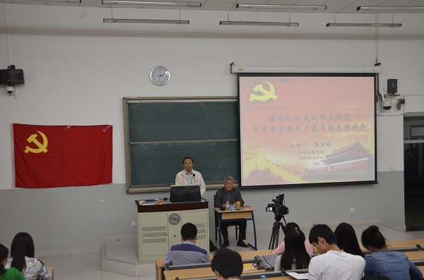 讲座中,张宏毅老师结合自身经历和感悟,针对怎样认识我们伟大的党以及如何努力做合格党员两个主题与在座师生进行交流。张宏毅老师认为中国共产党最为突出的四个特点分别是理想信念的坚定性、思想路线的独创性、一以贯之的革新性和海纳百川的包容性。中国共产党始终代表中国先进生产力的发展要求、中国先进文化的前进方向以及中国最广大人民的根本利益,“只有理解了中国共产党,才能真正理解中国”。张宏毅老师指出,做一名合格党员,既要牢记党章和入党誓词,为共产主义奋斗终身,还要始终坚持正确历史观,努力提高自身理论思维能力;在学习西方的同时,也要时刻树立国家安全意识,对“西化”中国的图谋保持高度警惕。讲座的最后,张宏毅老师勉励大家要保持共产党员先进性,努力做“顶天立地”人;树立崇高理想信念,做又红又专带头人;要对国家、社会、人民有一种责任感,用老实的态度对待生活和工作;牢固树立劳动最光荣,劳动最神圣的思想;既“敢”字当头,又谨言慎行;始终保持乐观精神,学会在复杂环境中锻炼坚强意志。尤其作为北京师范大学的学生,要更加热爱党的教育事业,为中国特色社会主义事业添砖加瓦。