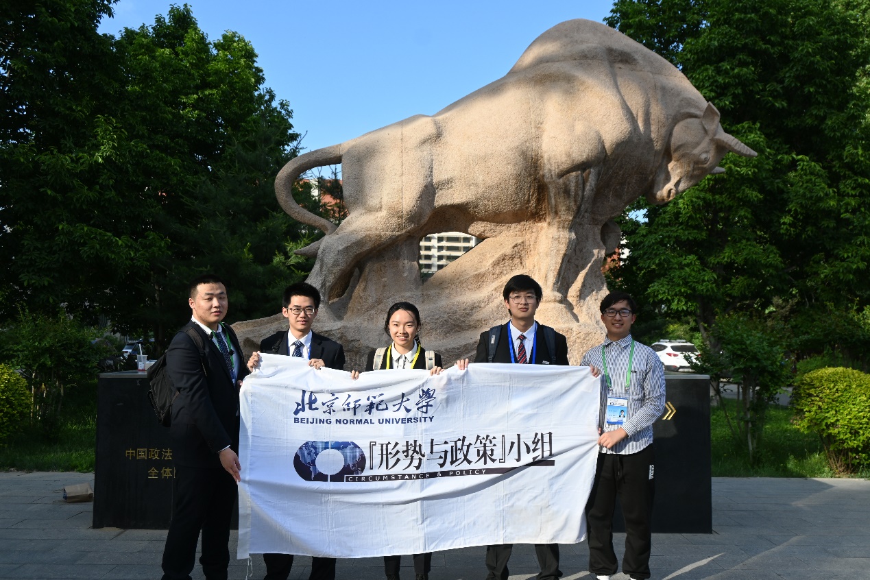 2023年5月13日,“慎思明辨”首都高校模拟外交谈判赛第二场于中国政法大学昌平校区成功举办。历史学院2020级本科生郭婧、历史学院2021级本科生晏明昊、杨新頔应邀参加比赛,荣获季军。“形势与政策”小组原学研专员周逸峰、副组长兼学研专员张正宇、宣传专员洪子阳等小组成员代表应邀前往观赛。
