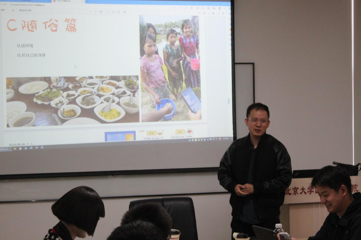 11月4日,“形势与政策”小组常务副秘书长杨新頔,组织专员徐跃,宣传专员洪浩哲,组长助理余子安,23级新成员王瑞阳、黄永涛等受邀赴北京大学国际关系学院参加第一期讲座《区域国别田野技巧与反思:以缅甸为例》。本次讲座由北京大学区域与国别研究院张添老师分享宝贵田野经验。张添老师立足自身经历,向大家讲解了田野调查的相关思路与注意事项,语言生动活泼,结构清晰有体,听众反映热烈。讲座结束后,“形势与政策”小组成员参与北京大学东南亚协会友好经验分享,也同兄弟社团国际关系学院国际问题研讨会开展友好互动。