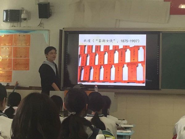 2015级博士生葛静波以“旅行的意义”为题,结合自己旅行中的见闻,给中学们带去一堂别开生面的主题教育。葛静波以海峡两岸为例讲述了历史的多面性,引导学生树立正确的历史观;又以抗美援朝中的朝鲜和二战中的日本为例,论述和平的来之不易,并就时事与同学们互动,引导学生理性爱国。2015级硕士第一党支部的郭英夫精心设计了“商鞅变法与梭伦改革”一课,围绕课标要求和课本内容,以丰富翔实的图片和妙趣横生的细节激发同学们的学习兴趣,并鼓励同学们尝试从中西比较的思路将已学知识点进行整合。2015级硕士第二党支部的赵海艳同学讲述了牛街的历史与文化,通过讲述牛街的地理位置、名称由来、发展演变及牛街与国家整体发展几个话题,让同学们生动地认识了牛街风情。