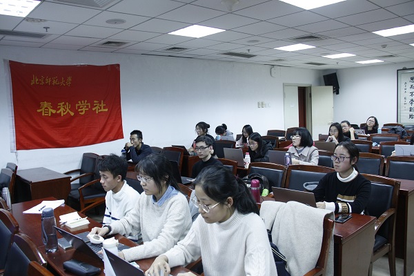 2018年11月25日下午14:30,春秋学社在前主楼600会议室举办“美国汉学史之反思”讲座。此次讲座有幸邀请到中国社会科学院国际中国学研究中心特聘研究员侯且岸老师,由春秋学社社长陈兴主持,春秋学社成员积极参与。