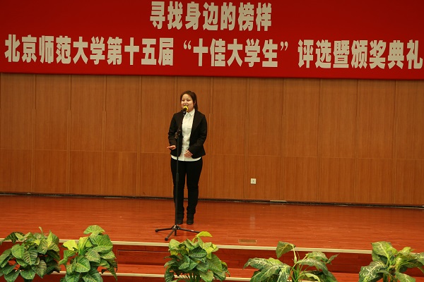 在第十五届“北京师范大学十佳大学生”评选活动中,历史学院2011级免费师范生古丽加汗.艾买提同学凭借自己的不懈努力以及沉着冷静的现场表现,以第一名的好成绩,荣获“北京师范大学十佳大学生”荣誉称号。