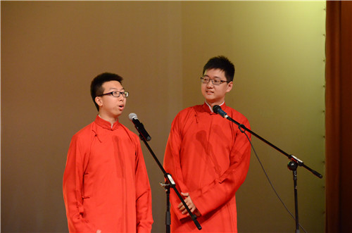 晚7时,晚会正式开始,一支活泼动感的开场舞点燃了晚会的氛围。随后,历史学院院长杨共乐老师上台为毕业生致词,祝福了15届毕业生并希望他们思考大学生活给自己带来什么作用和影响,不为答案,只为总结。 紧接着,宋文经和王帅鸣手持折扇,一袭红色长袍,你对我答,抑扬顿挫,为我们上演一出幽默风趣的《智取威虎山》,令人捧腹大笑。薛义默然静坐,独奏《酒狂》,琴声仿如从历史深处传来,沉静悠长,高山流水觅知音,一曲《酒狂》一段情。《假如“史料”欺骗了你》采用改歌词、串歌曲、配舞蹈等方式,借用“学霸”、“女神”等例子表演了她们在人们心中的形象和实际上的形象,奇特地展现了“透过现象看本质”的精神要义,最后还借《小苹果》表达对历史学院的爱意。