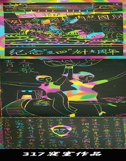 在活动前,支部已经为团员们下发了刮画材料,确定了“不忘初心跟党走”“纪念五四”的活动主题,请团员们以团小组为单位进行准备。活动当晚,各团小组先后派出代表,向大家展示自己的作品,并讲解作品的内涵。展示过程中,大家讨论热烈、气氛融洽,一幅幅色彩鲜艳、构思精巧的作品吸引人的眼球。展示结束后,团员们进行了现场投票,评出最喜爱的几幅作品。最终,女生318寝室团小组凭借作品《鲁迅先生》、《救国声中师大女学生》、《少年之还我青岛》获得一等奖;女生317寝室团小组凭借作品《外争国权,内惩国贼》、《青春之歌》、《沁园春·长沙》获得二等奖;男生628寝室凭借作品《五四运动纪念浮雕》,男生625寝室凭借作品《王国维纪念碑铭》获得三等奖。