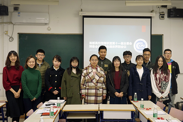 2017年11月25日下午两点,首都高校传媒联盟第十一届全委会预备会议暨特色媒体界别会议在北京师范大学教二楼举行。
