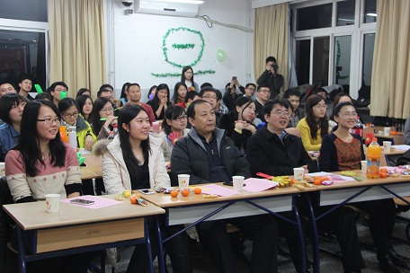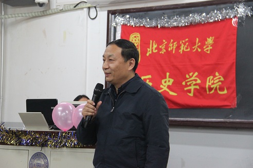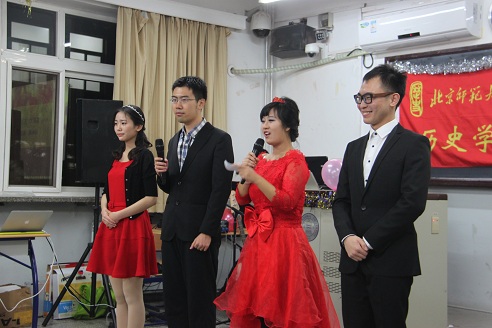 2014年正渐渐远去,新一年的钟声即将敲响。在元旦佳节来临之际,历史学院于2014年12月28日在化学楼200B隆重拉开元旦联欢晚会的大幕。出席本次晚会的嘉宾有历史学院院长杨共乐老师,分党委书记耿向东老师、副书记王卓凯老师以及2014级硕士班班主任陈殿和李力老师。师生齐聚一堂,其乐融融。