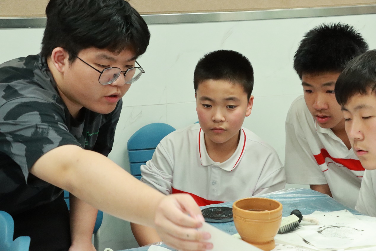 4月18日下午,春秋学社社员走进北京一零一中学石油分校,面向初一年级创新项目同学开展“纸墨留影:拓印和雕版印刷体验课”,以寓教于乐的方式弘扬和传承中国优秀传统文化。