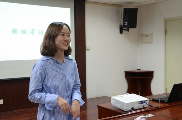 在欢送老师和与会嘉宾后,第十二届社长聂诗琦上台致辞。她首先向刚刚加入春秋人文报的新成员表示了欢迎,结合自身的经历,分享了她在春秋人文报的收获与成长,寄予新成员热切期望。