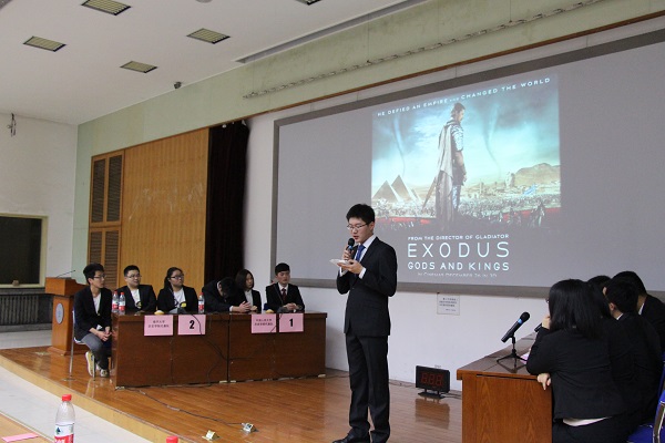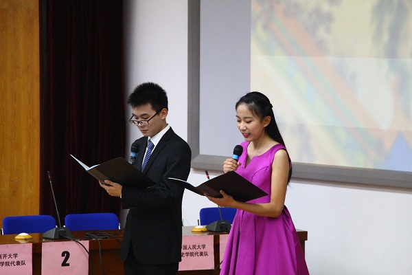 晚上7点,比赛在主持人李寒箫、郑伊楠热情洋溢的开场词中拉开帷幕。首先,各参赛队伍进行了幽默振奋的自我介绍。随后,主考官安云翔上场,比赛正式开始。本次比赛相较于去年题目类型基本不变,依旧是传统的各队必答题、扣人心弦的条件题、争分夺秒的抢答题以及创新有趣的视频题。比赛融入了时下流行的话题、影视剧,并且与学生生活密切结合,让选手们在紧张的比赛中轻松答题,让观众们在严肃的气氛下享受比赛。今年正值中国人民抗日战争暨世界反法西斯战争胜利70周年,为此,比赛设计了许多有关二战的题目,这也让选手和观众们在比赛中激发爱国热情,感悟到和平的珍贵。整场比赛中,各队选手丰富的历史知识和精彩的回答不时引发观众的阵阵掌声。