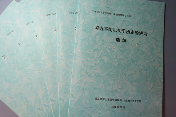 2015年12月10日晚7点,由我院2013级博士生党支部举办的“知古鉴今,明智兴邦——学习习近平同志关于历史的讲话”主题活动在主楼A603举行。活动旨在增进支部同志对当前党内有关历史学科的政策、认识的了解,通过对习总书记有关世界与中国历史问题的系列讲话的学习和交流研讨,深化党员对历史研究指导思想的认识,以更好地推进将来的历史研究实践。