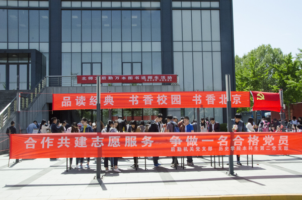 2016年4月22日,正值第20个世界读书日前夕,我院本科生第二党支部与后勤机关党支部以“合作共建志愿服务、争做合格党员”为宗旨,在邱季端体育馆北侧协助后勤管理处成功开展“书香校园、万本图书赠送”活动,圆满完成共建。我院本科生第二党支部党员、积极分子,以及后勤机关党支部志愿者共40余人参加了此次活动。校长助理张强出席活动,与师生共同交流读书选书心得。