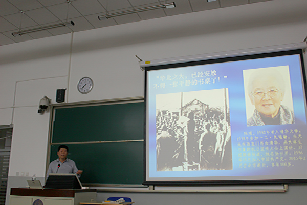 2016年5月6日晚7时,由历史学院主办,资源学院协办的“站在时代前沿的青年·走进北京革命遗址追寻先进青年足迹”主题讲座在我校化学楼化二教室召开。讲座由中共北京市委党史研究室宣传教育处副调研员宋传信老师主讲,历史学院分团委书记胡小溪老师主持。宋传信老师从事党史研究,获得丰硕成果,在《中共党史资料》《中国档案报》《前线》等报刊发表文章130余篇,采访多位老领导、老干部、老专家,编辑出版口述史丛书《风雨兼程》。历史学院党支部、团支部、各团小组成员和分团委干事参加了本次讲座。