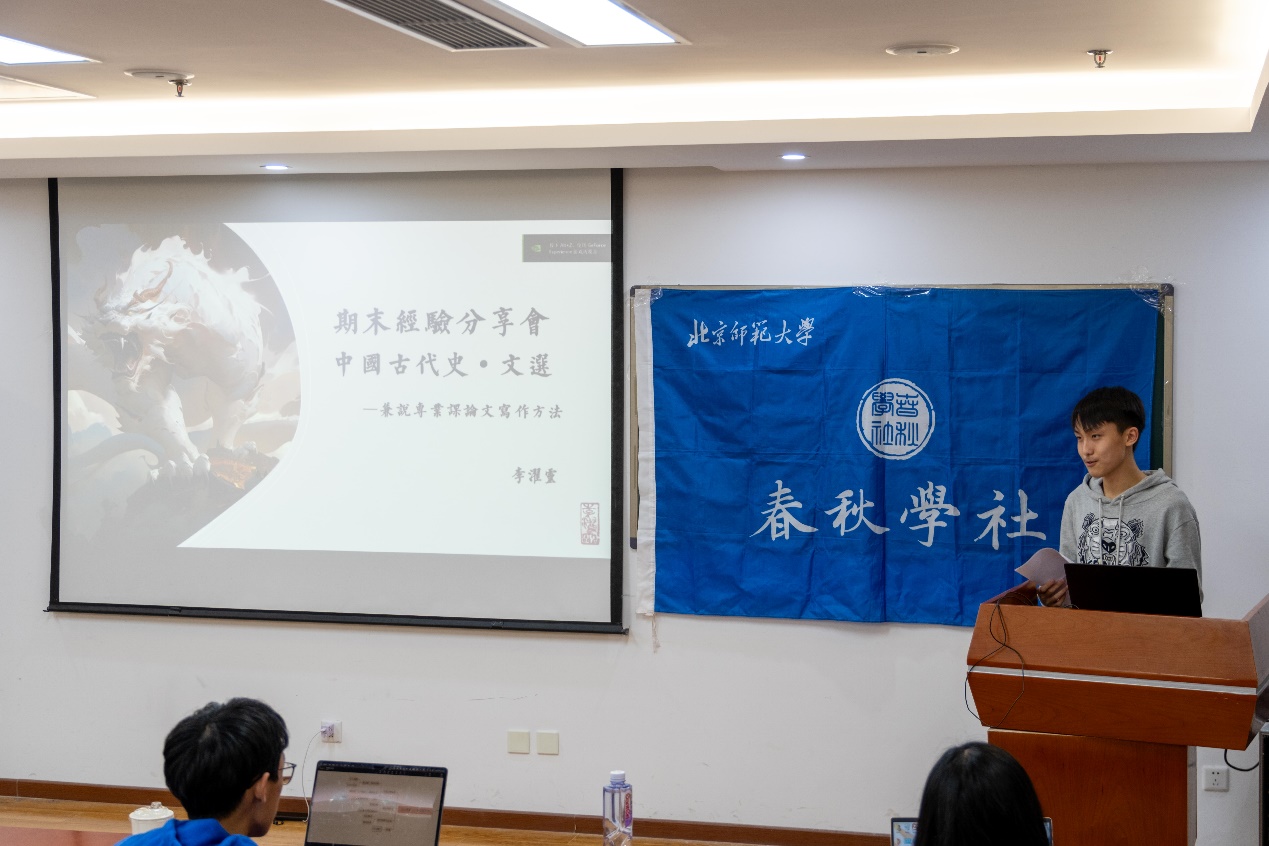 11月25日20:30,春秋学社在主楼638会议室举办了期末经验分享会,本次活动邀请到历史学院2022级本科生李濯灵、郑可莹、李晨舟三位同学作为主讲嘉宾。本次活动由春秋学社企划部肖宜佳同学主持。