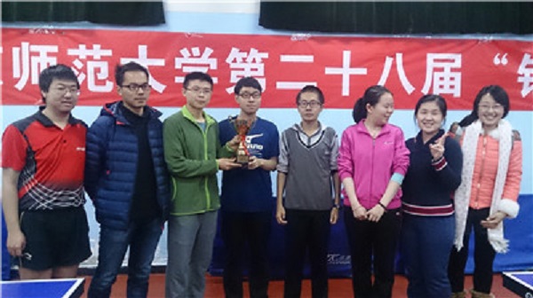 在先前举行的抽签仪式中,我院与地遥、生科、教育、哲社分在一组。13日下午2点,我院首战教育学部,李子杰率先出场。他首局略显紧张,以9:11先负。随后李子杰调整状态,没有再给对方机会,连胜两局,为我院先拔头筹。随后夏子媛出战女单,她在比赛伊始便完全克制了对方球路,以11:3拿下第一局,第二局虽然受到一些挑战,但依旧以12:10胜出。我院以2:0锁定胜局。在混双比赛中,陈鸣悦、侯美的组合以2:0轻取对手,为球队锦上添花。我院轻松晋级八强。