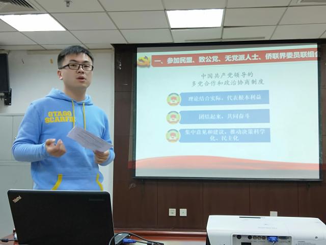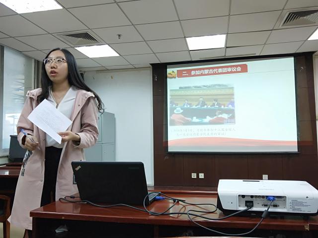 2018年4月15日晚6点,历史学院本科生党支部在主楼600开展理论学习活动。本次理论学习活动的主题是十九届二中、三中全会精神和两会精神,学习形式是分组展示汇报。