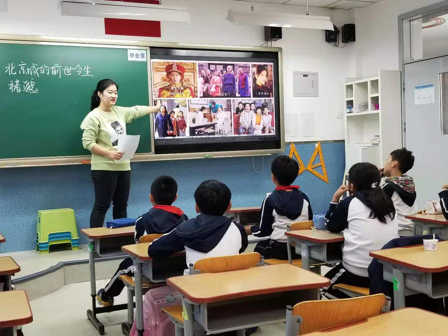 2019年11月4日,春秋学社开展本学期校尉小学第一次讲课活动,由历史学院2017级本科生褚邈主讲“北京的前世今生”课程。褚邈同学追溯了北京的古今面貌,细致呈现了北京的发展历程。课堂上,她询问学生们对北京的印象,并朗诵古诗《登幽州台歌》,师生间积极互动,气氛活跃。褚邈同学还展示了《家有儿女》、《康熙王朝》等经典影视作品辅助教学,让学生们感受北京的古今生活,可谓代入感十足。