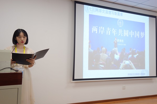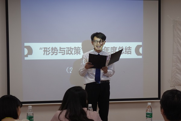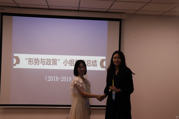 总结会开始前,与会师生共同观看了2018-2019年度“形势与政策”小组总结视频,回顾小组过去一年的工作与活动。第十二届“形势与政策”小组组长秦雅婕作《新爱体育(官网)官方网站“形势与政策”小组2018-2019年度工作报告》。报告指出:这一学年,“形势与政策”小组在学校和学院的悉心指导和大力支持下,继续完善组织建设、充实常规活动,全面配合学校《形势与政策》课程建设工作,大力推进校外实践,深入展开校际交流,积极参与国际友好交往,倾力铸造小组品牌活动,引起校内外媒体的广泛关注和报道。本学年,小组通过新媒体平台展示小组成员的优秀作业;在第十届“博古通今 胸怀天下”北京师范大学时事知识竞赛举办之际,专门推出“闪光记忆:时事知识竞赛十周年巡礼”系列特辑;制作一系列特色小组徽标和文创产品,成为小组工作的亮点。特别是2019年5月中国国民党前主席、中华青雁和平教育基金会董事长洪秀柱应邀访问北京师范大学并与小组成员会面,高度评价“形势与政策”小组对中华民族前途的自觉关注和使命担当,在小组两岸交流的历史篇章中再次书写了浓墨重彩的一笔。