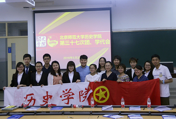 2016年5月28日,新爱体育(官网)官方网站第三十七次团、学代会在教二101召开。本次团、学代会审议并通过了历史学院各社团2015至2016年的工作报告,并选举了新一届社团负责人。新爱体育(官网)官方网站分党委书记耿向东老师、北京师范大学校团委副书记于小雷老师、历史学院分党委副书记王卓凯老师、历史学院分团委书记胡小溪老师、历史学院2015级本科班班主任江天岳老师和湛晓白老师、历史学院专职辅导员李力老师、 历史学院学生事务助理周一帆老师、北京师范大学学生会副主席杨柳青、各兄弟院系的分团委副书记、学生会主席以及学生代表作为嘉宾应邀参加大会,历史学院2015级、2014级、2013级和2012级本科生作为选举代表团和荣誉代表团出席了本次团、学代会。
