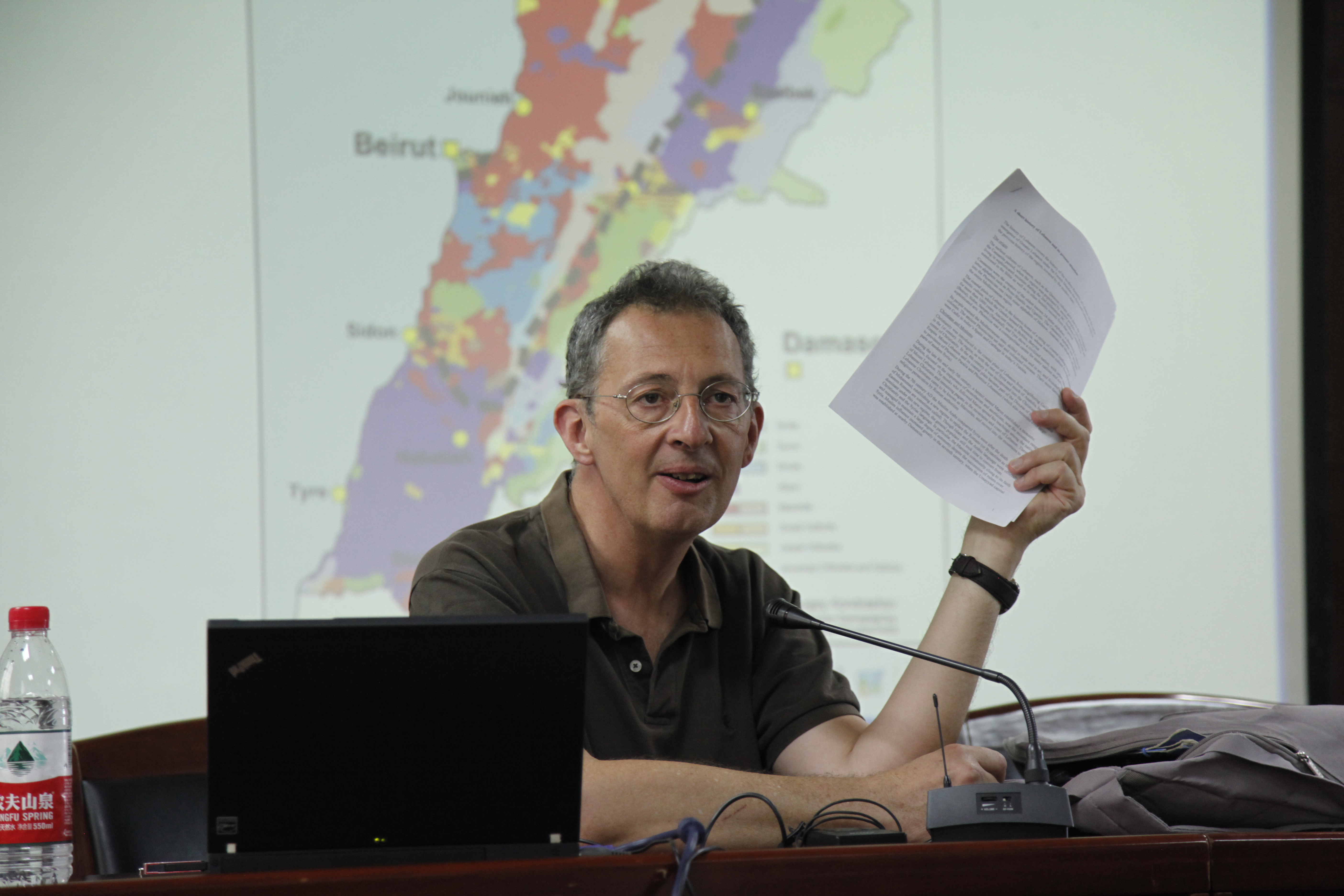 6月15日下午,黎巴嫩巴拉曼大学历史系教授阿莱克斯·雷蒙(Alex Raymond)在主楼600会议室作了题为“黎巴嫩的历史与现状”的学术讲座。本次讲座系我校励耘学术讲堂历史学系列讲座之一,由历史学院世界上古中古史教研室主任刘林海教授主持,历史影像教研室吴琼老师、世界近代史教研室江天岳老师出席了讲座。江天岳老师协助雷蒙教授进行法汉对译。