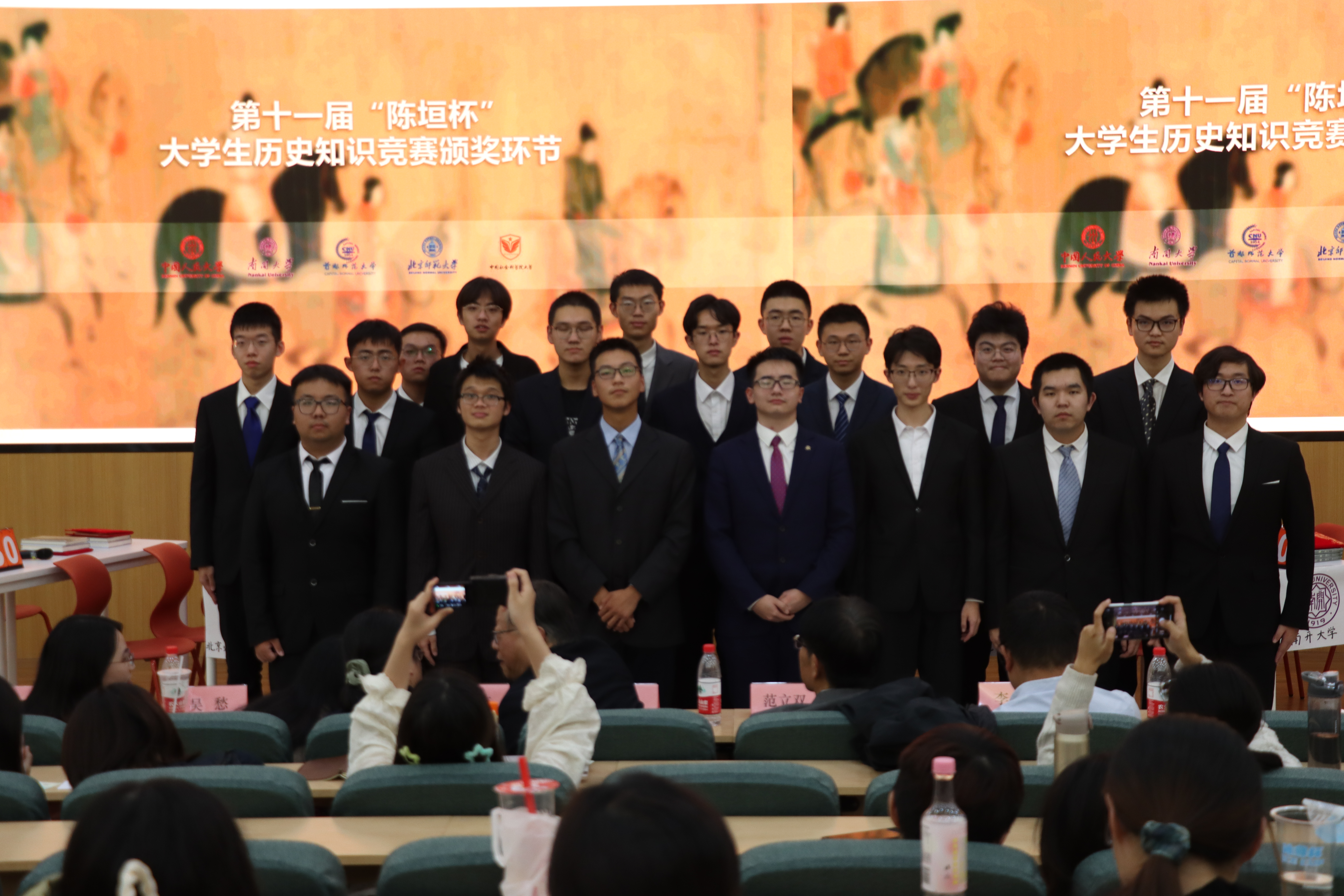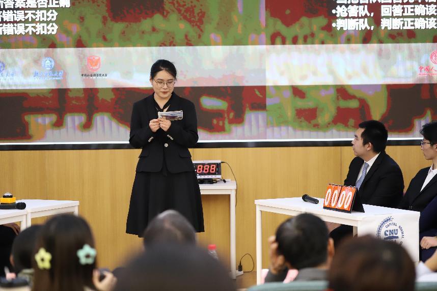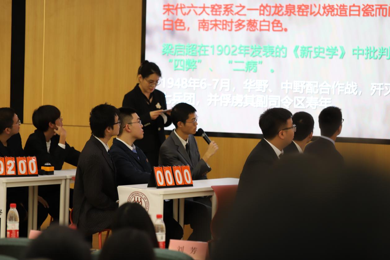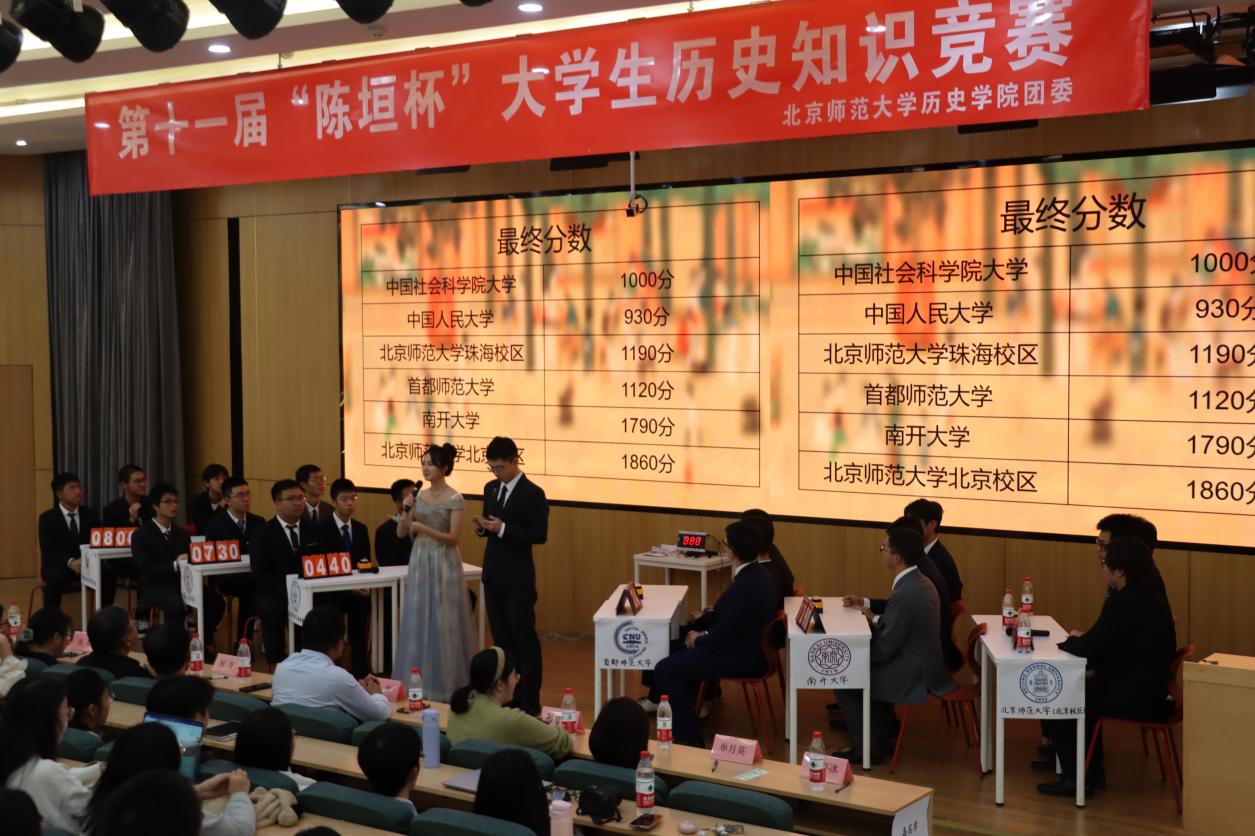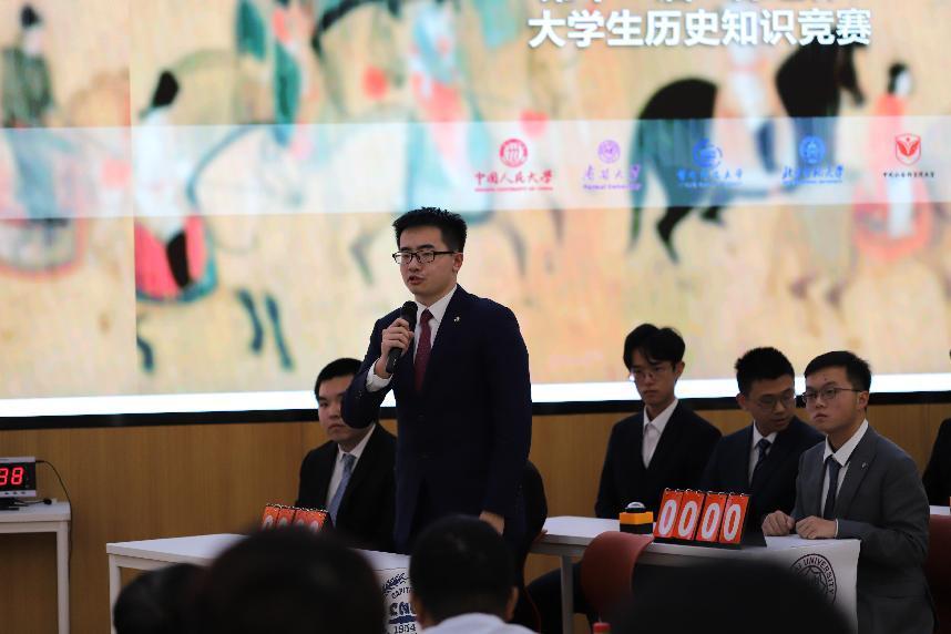 此次竞赛邀请到北京师范大学北京校区、北京师范大学珠海校区、首都师范大学、南开大学、中国人民大学、社会科学院大学六所高校的优秀选手组成的六支代表队参加决赛角逐。他们凭借深厚的历史知识积累,彰显出当代高校学子深厚的史学功底;凭借敏捷的思维,展现着当代青年学子的昂扬风貌,为观众呈现了一场紧张而精彩的对决。