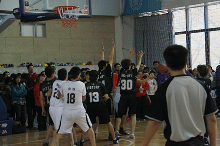 11月23日,历史学院男篮与地遥男篮争夺本届赛事冠军。地遥作为今年排球赛足球赛的双料冠军,被公认为是一支传统的体育强队。而历史学院作为本届“明月杯”最大的黑马,一路高歌猛进,以全胜的战绩昂首挺进决赛。此前,我院男篮在小组赛中先后击败了天文、物理、地遥、心理四支球队,并在八强赛中一分险胜法学院男篮,晋级四强,在半决赛中再以一分打败化学学院,成功打进冠亚军争夺战。我院男篮打进决赛还是十二年前,当时遗憾败北。而男篮夺冠则要追溯到六十年前,1954年12月25日刊登在《师大教学》中的新闻,记载了历史系篮球队当年获得男篮冠军的情景。转眼一个甲子,历史学子又将朝着自己的梦想进发。